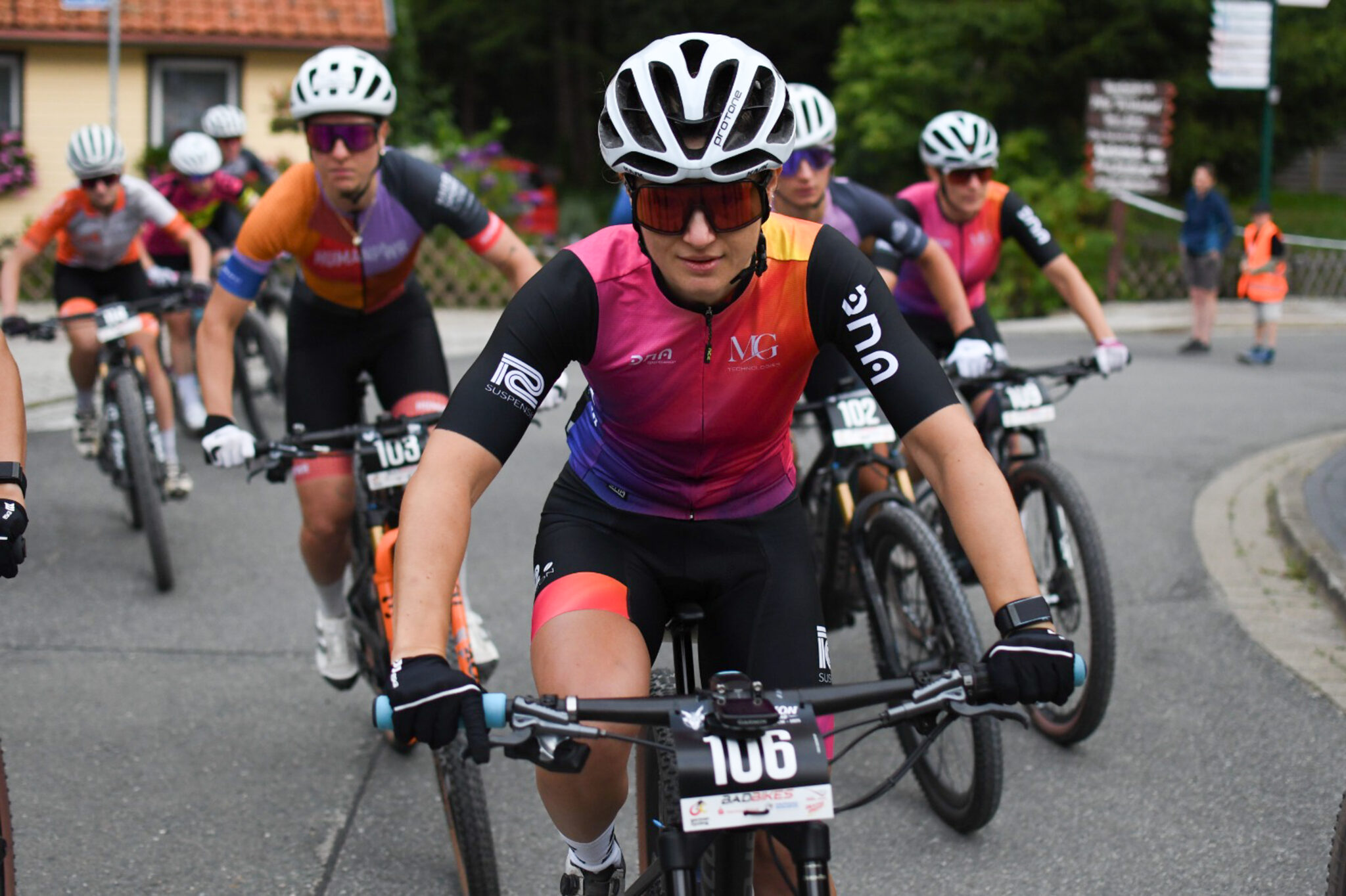 Tanja’s Eindrücke über ihr Rennen und ihre Erlebnisse: Die Strecke war abwechslungsreich und technisch anspruchsvoll. Hat dem Namen „Endurothon“ alle Ehre gemacht. Ich habe direkt am Start versucht anzugreifen, konnte aber noch nicht genug Fahrerinnen abhängen. In der ersten technischen Passage wurde ich dann minimal distanziert, hab mich aber nicht aus der Ruhe bringen lassen und einfach mein Ding gemacht. Konnte dann bald wieder aufschließen und von da an die Gruppe auseinander fahren. Ich bin dann mit der späteren Siegerin, Luisa Daubermann, den ganzen Anstieg zusammen gefahren, musste mich bei einer Attacke aber geschlagen geben. Die Siegerin, ein XCO Profi, war dann auch bergab einfach überlegen und ab dem Zeitpunkt habe ich mein eigenes Ding durchgezogen. Ich bin ab da alleine gefahren und das hat richtig gut funktioniert. Ich bin stolz, dass ich trotz der vielen anspruchsvollen Trails einen großen Vorsprung auf das restliche Feld herausfahren konnte und endlich auch im Rennen zeigen konnte, dass ich mit technischen Strecken gut zurecht kommen kann. Von den Marathon Fahrerinnen war ich die beste und hatte 12 min Vorsprung auf Platz 3.